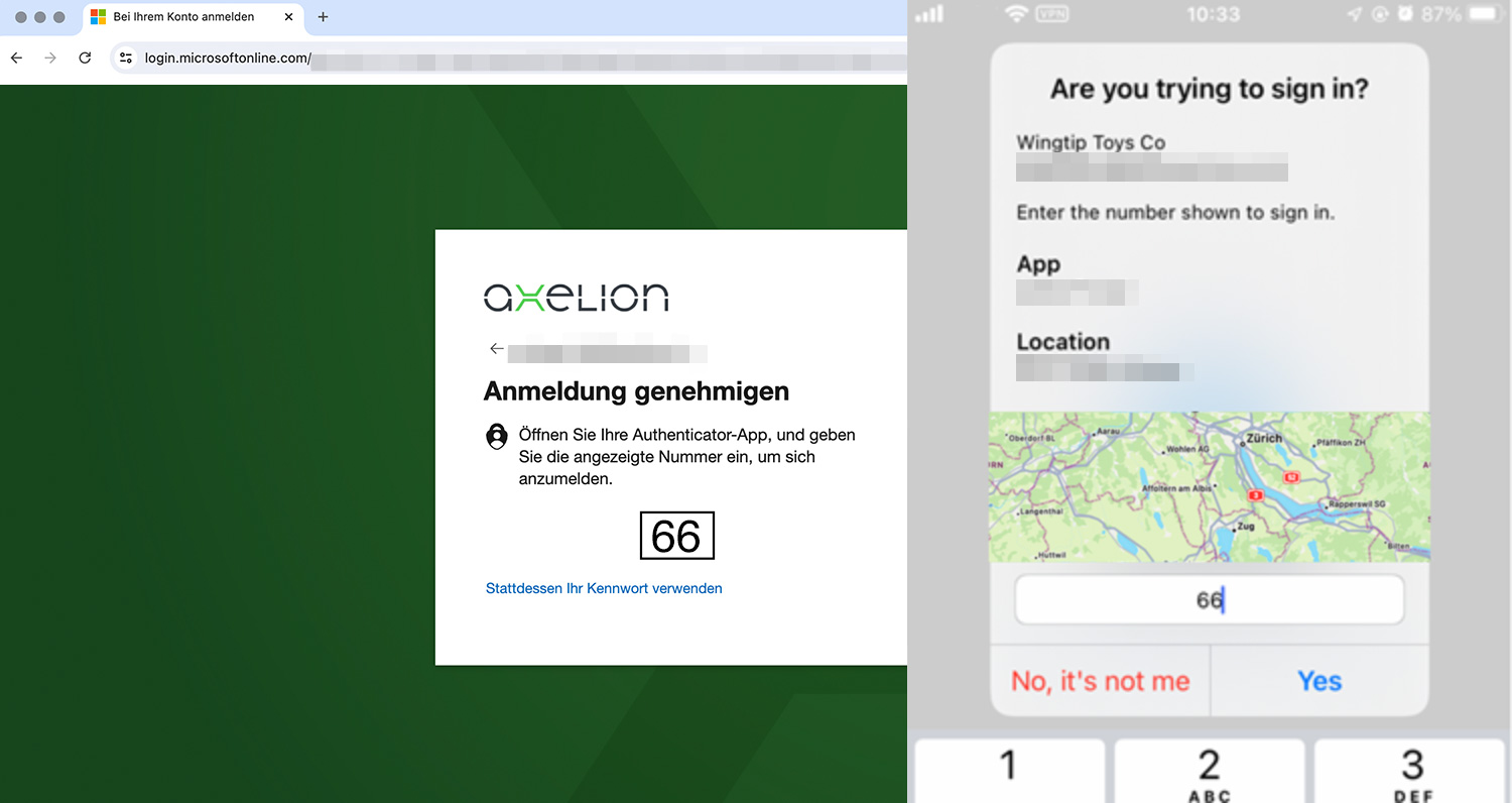 Durch das phishing-resistente «Number Matching» von Microsoft wird dir an deinem Desktop-Gerät eine Zahl angezeigt, welche du anschliessend in der Push-Benachrichtigung an deinem Smartphone eintippen musst. Die Eingabe von einem Passwort ist nicht mehr notwendig.