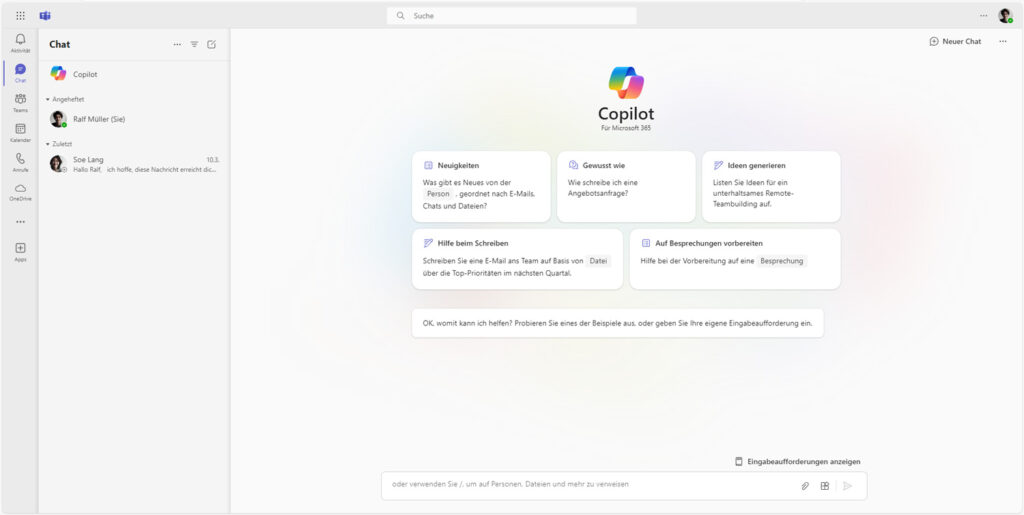Microsoft Copilot ist als KI-Assistent vollumfänglich im neuen Teams integriert, um deine Arbeit mittels künstlicher Intelligenz zusätzlich zu erleichtern.